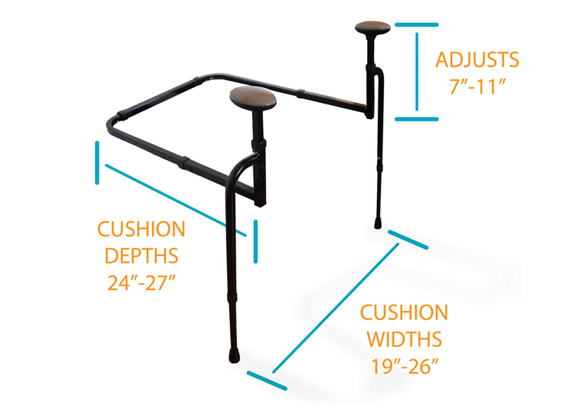 • FULLY ADJUSTABLE: The EZ Stand-N-Go is fully adjustable in height to fit cushions 12″-21″ from the ground; It also adjusts in width and depth to fit cushions 19″-26″ wide and 24″-27″ deep.