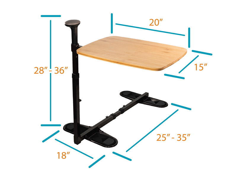 • EASY TO ASSEMBLE: Install the sofa desk underneath the feet of most four-legged lit chairs, recliners, couches, or sofas with feet ranging 25.5″-35.5″ apart in depth.
